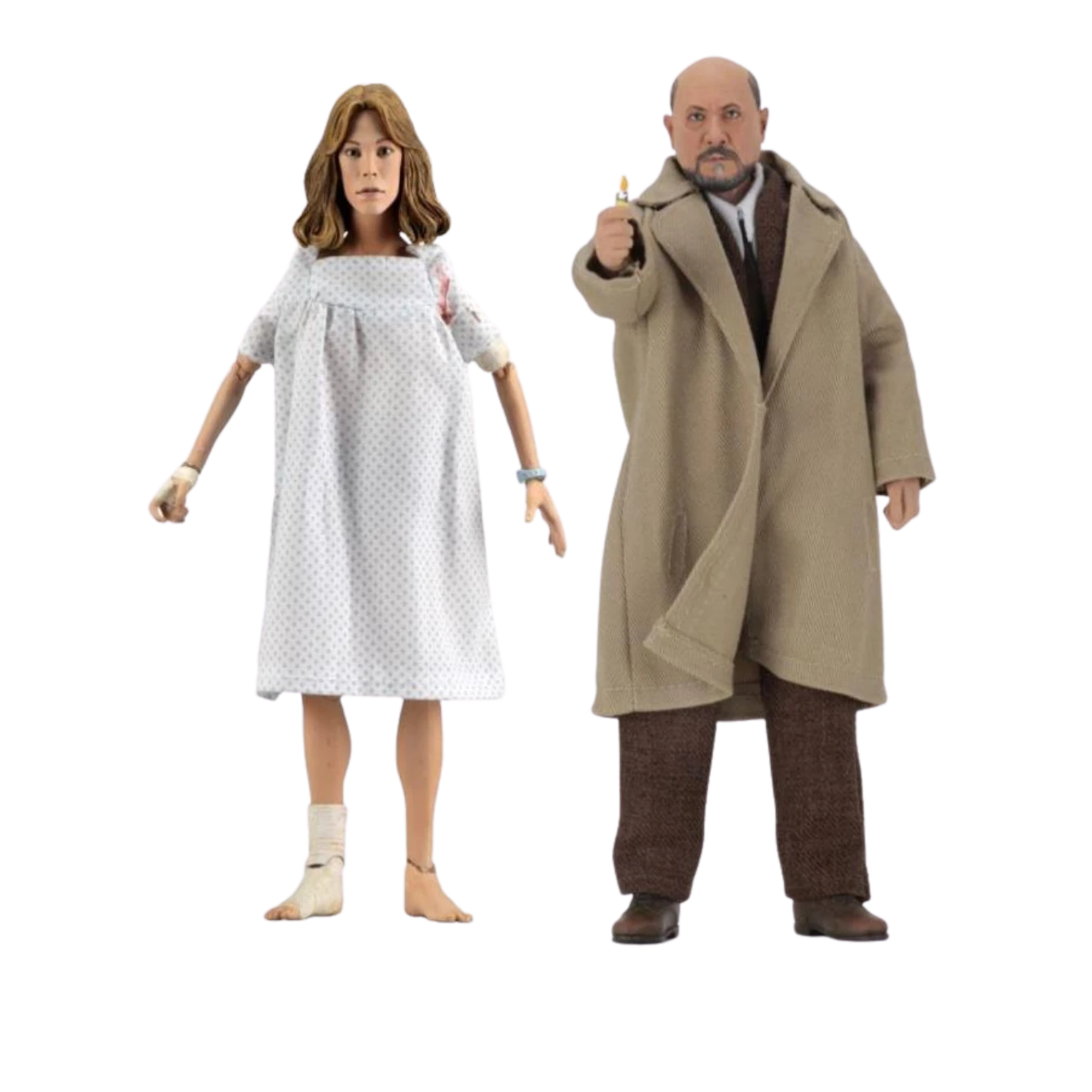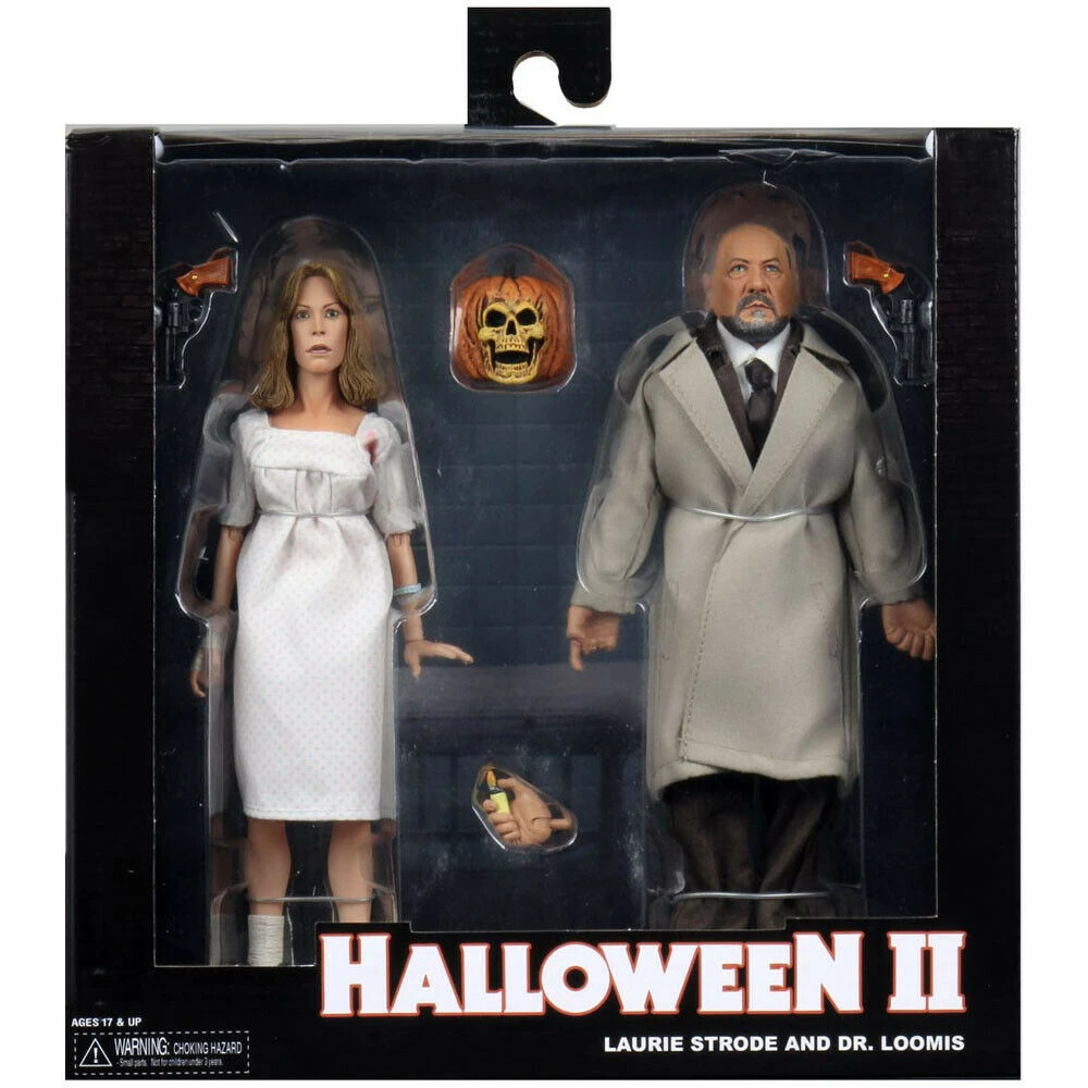 From the classic 1981 sequel Halloween 2, Doctor Loomis & Laurie Strode stand approximately 8 inches tall and come dressed in cloth clothing. Each figure is highly detailed and fully poseable featuring the authorized likenesses of Donald Pleasence and Jamie Lee Curtis.