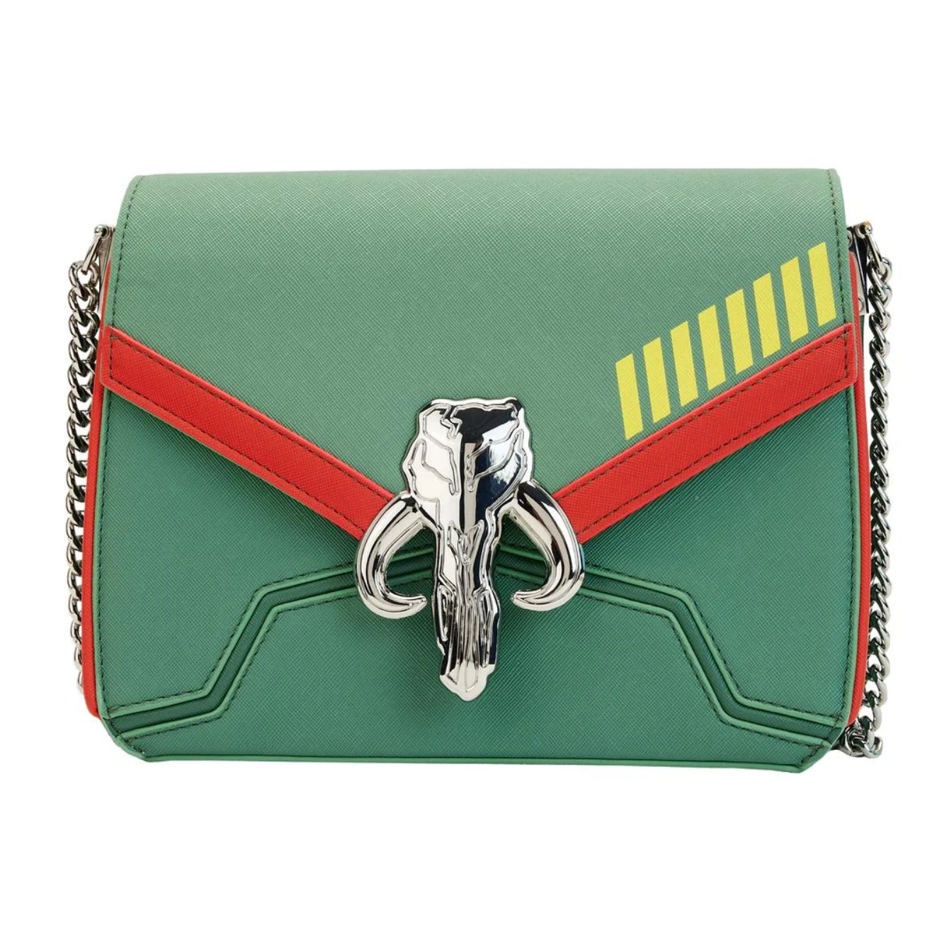 Your bounty is waiting. The Loungefly Boba Fett™ Cosplay Crossbody Bag has suited up to join your Star Wars™ collection. Recalling Boba Fett’s helmet, the front of this bag features red and yellow markings on the front and back. A molded metal rivet in the shape of the Mandalorian™ symbol keeps the bag closed, and an adjustable red shoulder strap brings the look together. This galactic accessory makes a stellar addition to any outfit and is perfect for fans looking to keep one of their favorite characters close.