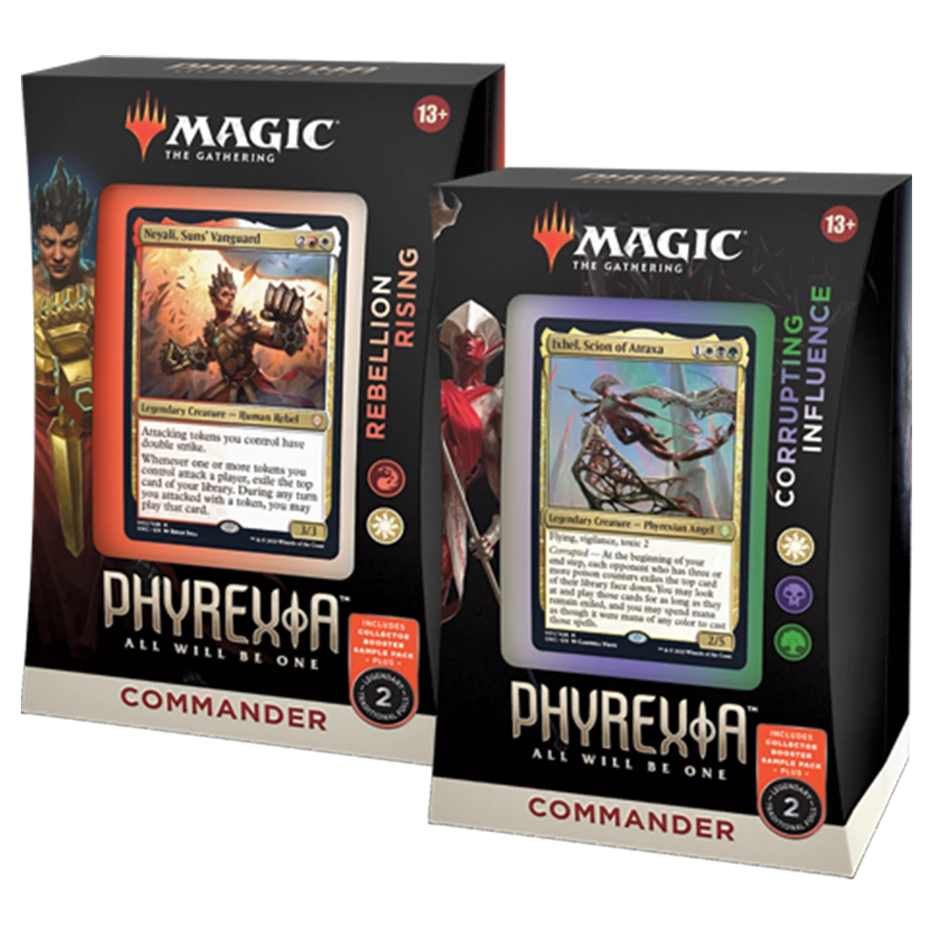 - 4 Collector Booster Sample Packs—1 with each deck (each pack contains 2 cards, with 1 Traditional Foil Showcase Ichor card + 1 Borderless or Extended-Art card)
