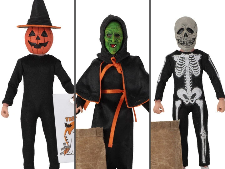 It’s almost time, kids! The clock is ticking!” This set of three clothed action figures includes the three iconic trick or treaters from the 1982 horror movie Halloween 3: Season of the Witch .