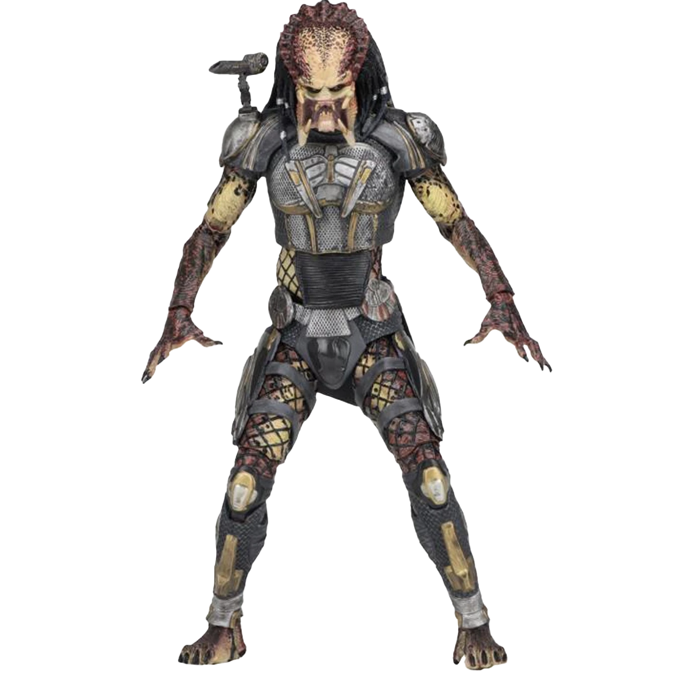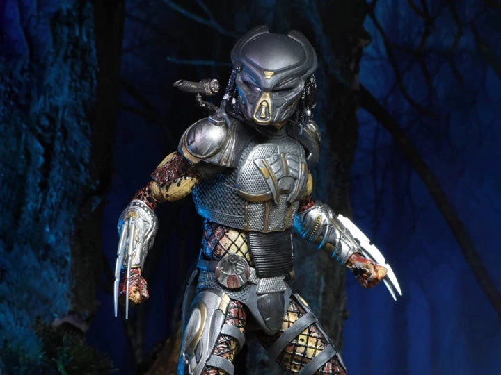 From the 2018 movie The Predator! The Fugitive Predator stands over 8″ tall and features over 30 points of articulation. Includes 2 interchangeable heads (masked and unmasked), interchangeable forearms, 4 interchangeable hands, 4 wrist blades, and articulated shoulder cannon.Â