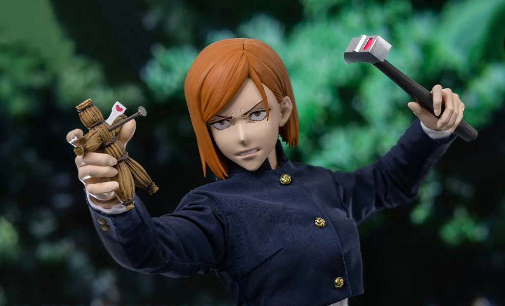 The Nobara Kugisaki Sixth Scale Figure is approximately 10.6 inches (27cm) tall, and is a fully-articulated collectible figure with over 32 points of articulation. The head is sculpted by renowned sculptor Akinori Takaki, and the materials used for the figure are mainly PVC and ABS.