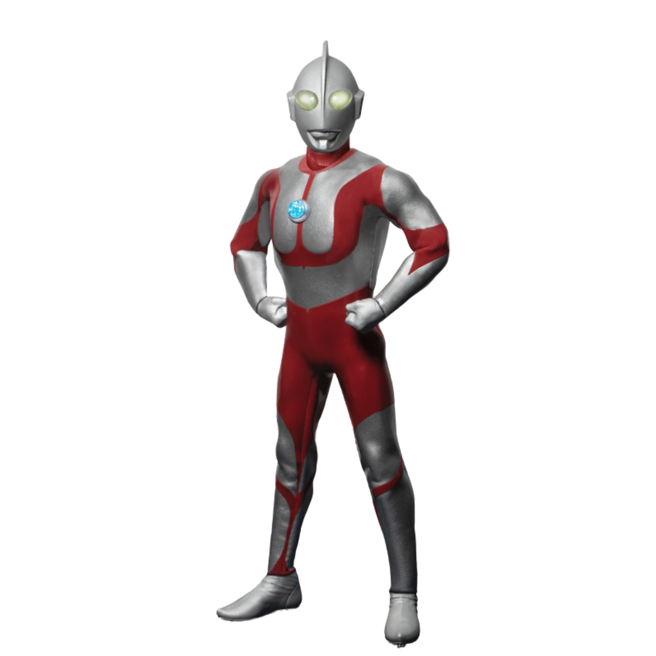 Ultraman is outfitted in a combat suit powered by his Ultraman Factor, and features a light-up Color Timer on his chest. He comes with two light-up head portraits including a Fluoroscope Ray portrait, known for de-cloaking and destroying!