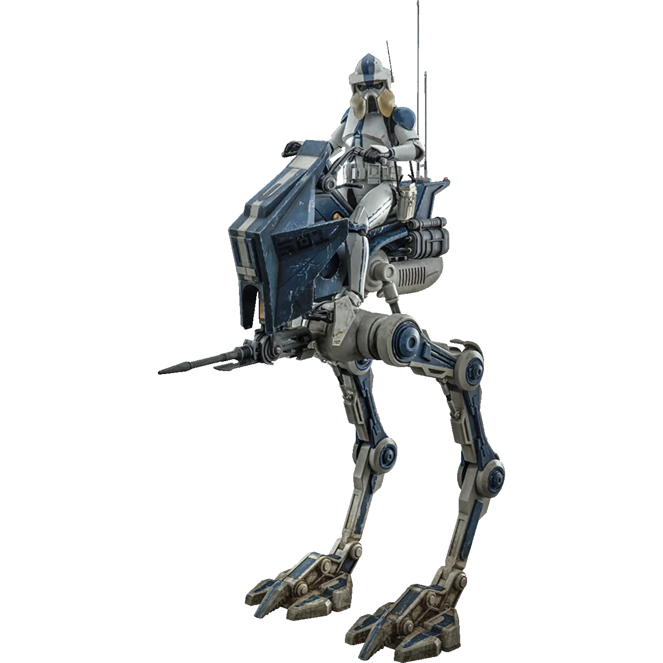 The stunningly crafted 1/6th scale 501st Legion AT-RT stands at approximately 23-64cm tall with the battalion’s signature blue paint application and 501 marking with weathering effects, as well as an astonishing range of articulations allowing different display poses.