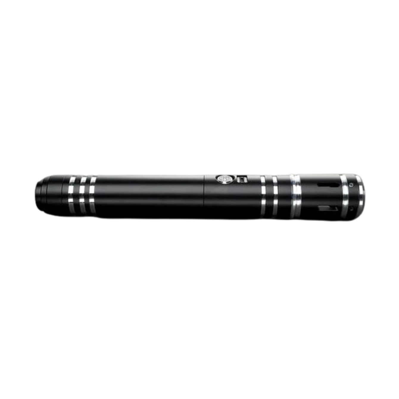 Simple elegance that means business, this lightsaber is streamlined and built for speed. Dominar features a two-tone silver and black motif that looks as good in the hand of the Dark Side as it does the Light. Slotted emitter windows reveal your chosen blade color shining through the hilt to intimidate your opponents or bolster your allies spirits! The stepped pommel provides a subtle finish to the saber, creating an overall well balanced and fast design for duelists of all kinds!