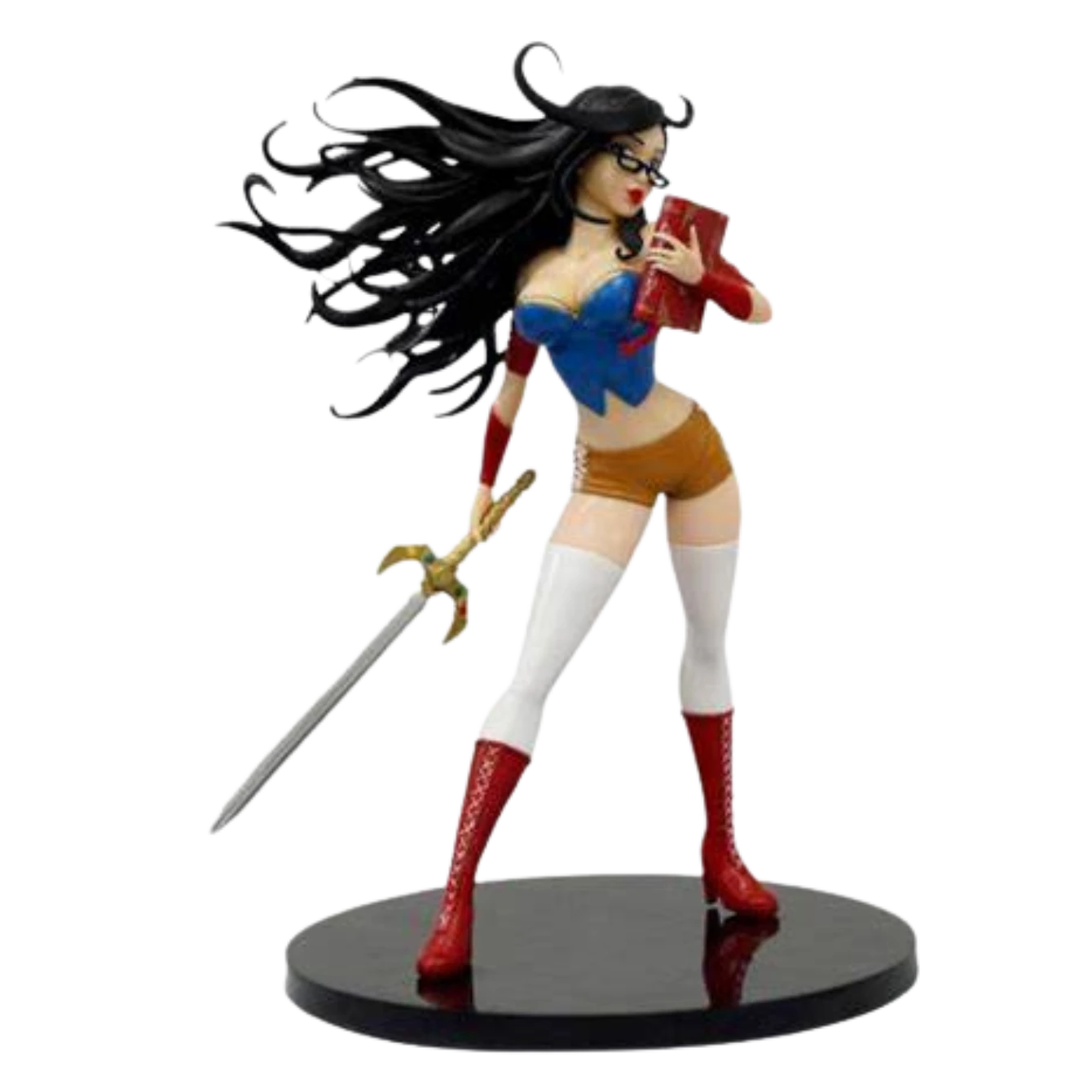 This beautiful figure standing at nearly 9 inches, is inspired by Jason Cardy’s illustration of Zenescope’s feisty heroine. With her signature black-framed glasses, Sela Mathers is posed with her sword, Lysraseri, and her powerful book of Fairy Tales, ready to bring consequences and not so happy endings to those who do not heed her warnings.Â