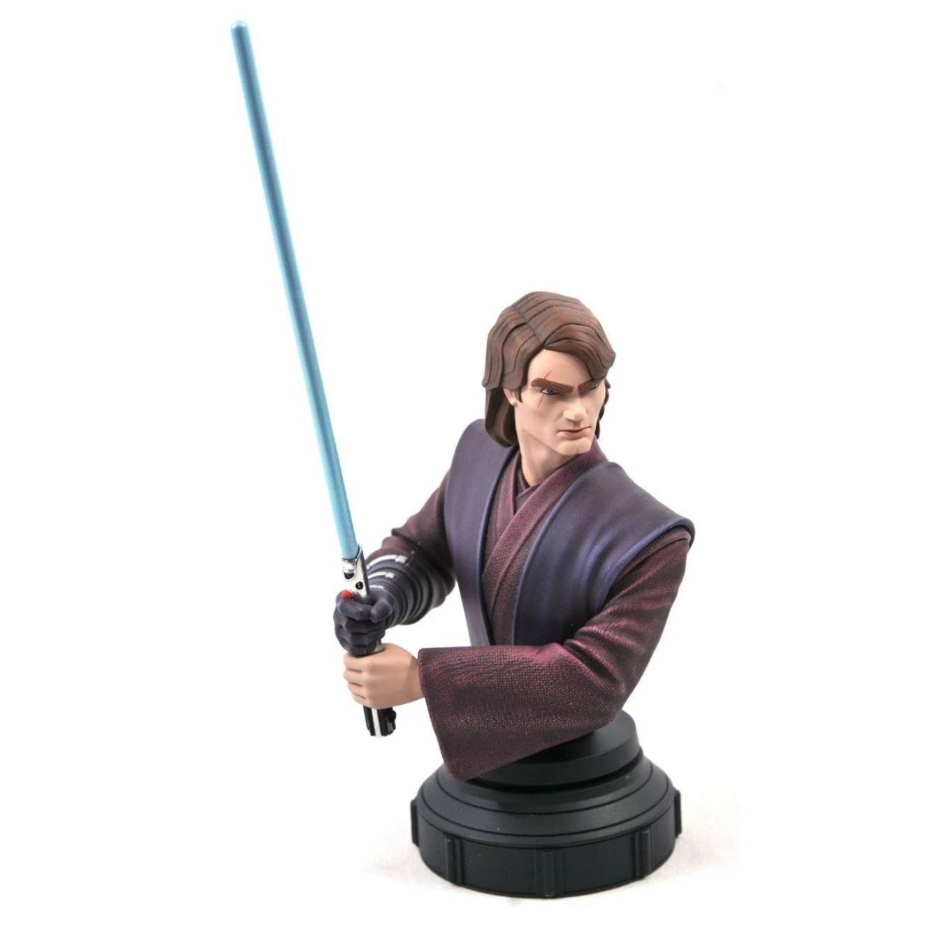 The Clone Wars continue with this all-new animated-style bust! Anakin Skywalker joins his master Obi-Wan Kenobi in this approximately 6-inch tall, 1/7 scale resin bust. Based on the characterโs appearance in Star Wars: The Clone Wars, this bust features detailed sculpting and paint applications, and comes packaged in a full color box with a numbered certificate of authenticity. Designed by Barry Bradfield, sculpted by Paul Harding!