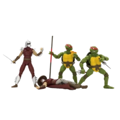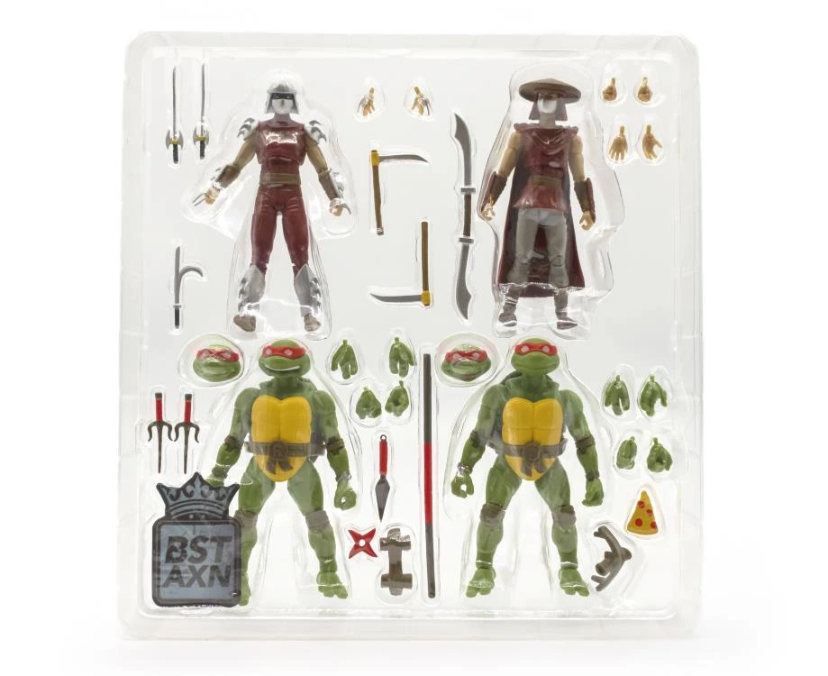 Donatello and Raphael face off against Shredder and his Foot Elite henchman in this limited edition set that features classic Mirage styling. With 31 points of articulation including: ball joints; swivel bicep and thigh joints; and double knee, shoulder, and elbow joints; these figures are ready for action with maximum poseability!