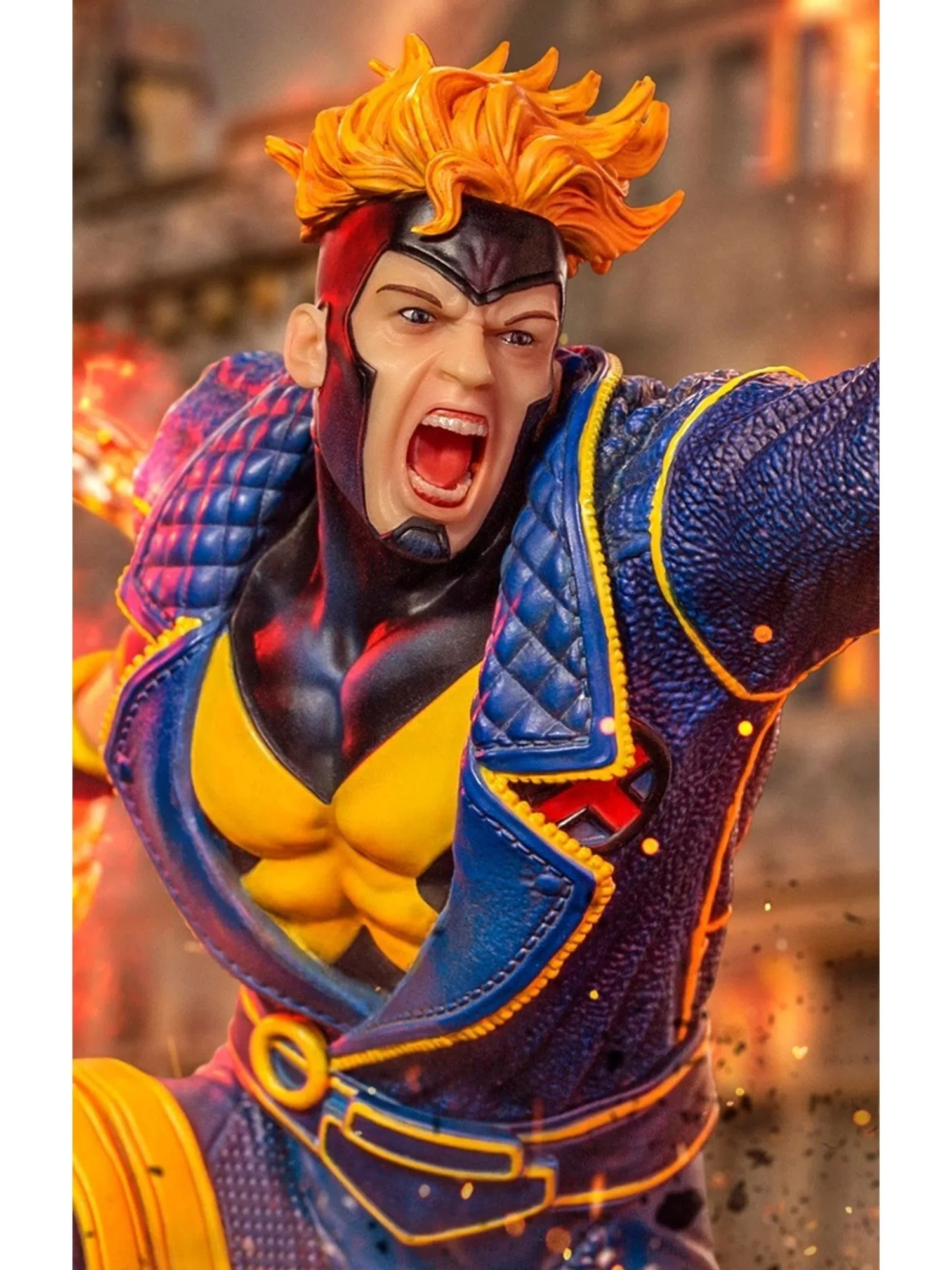 The base is composed of what was once part of the wooden floor of Mansion X, along with the remains of a molten metallic Sentinel robot hand. Standing on top of the base is the mutant hero wearing a blue and yellow uniform, the standard 1990s uniform from Professor X`s group of students and allies, the so-called X-Men. With all his style and personality and still wearing a jacket, the mutant releases his plasma energy power through his right hand while firing a cosmic ray vortex from his left hand. Thus, Iron Studios presents the statue “Havok – X-Men – Bds Art Scale 1/10”, one more item among the classic Marvel mutant heroes. The collection features the diorama scenario of the X-Men facing Magneto, the Sentinel robots under his control, and his followers and allies.